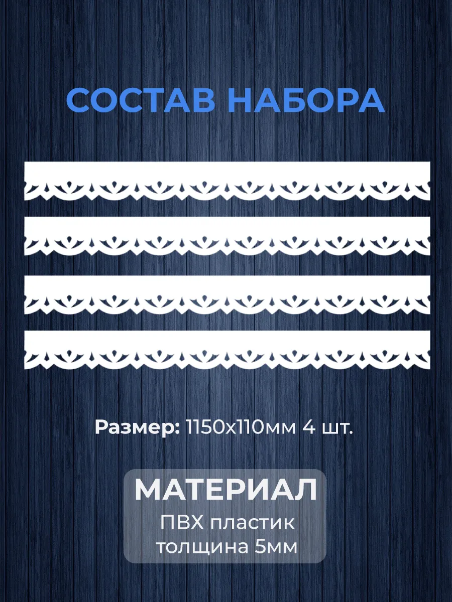 Ажурный обналичник из ПВХ создан для оформления фасада дома и придания индивидуального стиля. Фризы идеально подчеркивают архитектурные линии, украшая контур крышных и дверных проемов. Легкий монтаж и устойчивость к влаге обеспечивают долговечность и сохраняют привлекательный внешний вид под воздействием осадков и солнечных лучей.