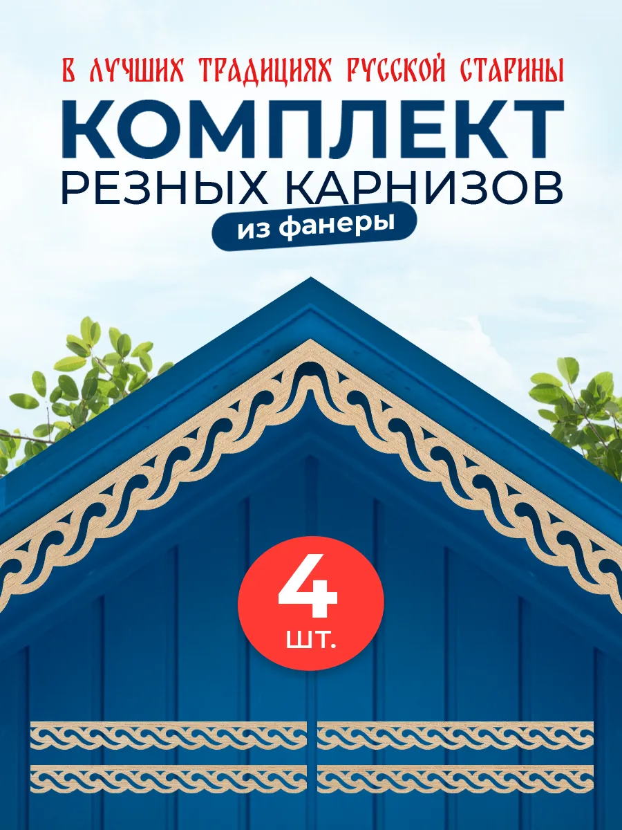 Набор обеспечивает готовое решение для оформления фасадных элементов, акцентируя внимание на деталях и подчеркивая контур здания. Обналичка с фризом не только выполняет декоративную функцию, но и защищает конструкцию от механических повреждений. При необходимости комплект деталей легко устанавливается собственными силами, снижая затраты на отделку. Такое украшение для дома сочетает функциональность, качество и изысканный дизайн, придавая фасаду завершенный и презентабельный вид в старо-русском стиле.