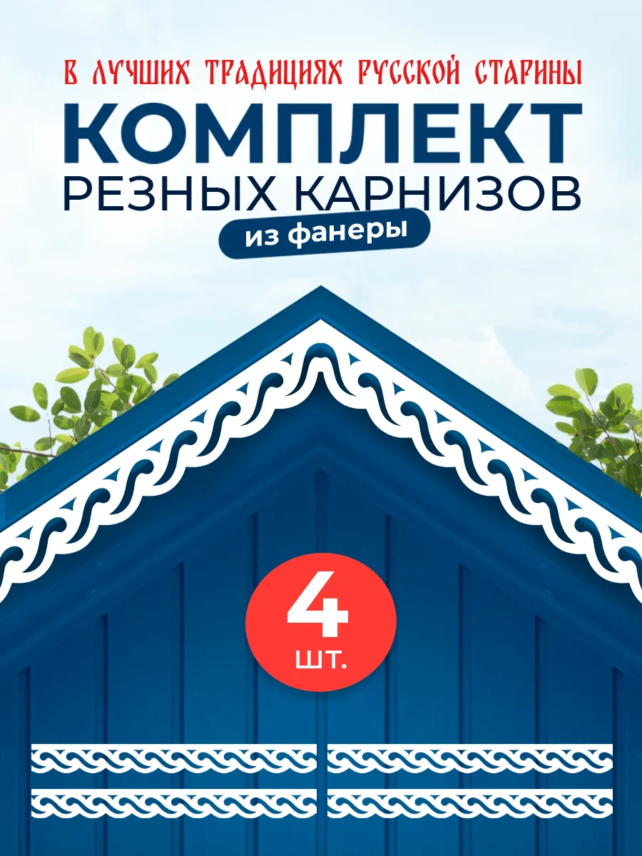 Ажурный обналичник из ПВХ создан для оформления фасада дома и придания индивидуального стиля. Фризы идеально подчеркивают архитектурные линии, украшая контур крышных и дверных проемов. Легкий монтаж и устойчивость к влаге обеспечивают долговечность и сохраняют привлекательный внешний вид под воздействием осадков и солнечных лучей. Фриз служит не только декоративным элементом, но и защищает фасад дома от попадания влаги и грязи. Комплект подходит как для новых домов, так и для обновления внешнего вида уже существующих сооружений. Ажурная обналичка украсит дом, гармонично сочетаясь с общим оформлением, подчеркивая крышу. Украшение фасада обналичником открывает широкие возможности для дизайна в старо-русском стиле, позволяя создавать уникальные решения для любого дома. Надежные фризы станут практичным и стильным акцентом, достойно выделяя фасад.