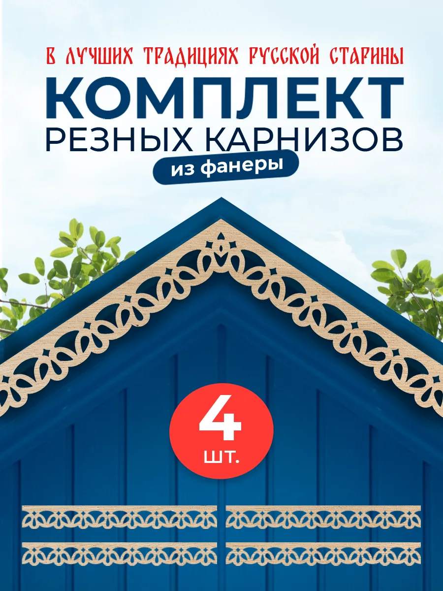 Набор обеспечивает готовое решение для оформления фасадных элементов, акцентируя внимание на деталях и подчеркивая контур здания. Обналичка с фризом не только выполняет декоративную функцию, но и защищает конструкцию от механических повреждений. При необходимости комплект деталей легко устанавливается собственными силами, снижая затраты на отделку. Такое украшение для дома сочетает функциональность, качество и изысканный дизайн, придавая фасаду завершенный и презентабельный вид в старо-русском стиле.