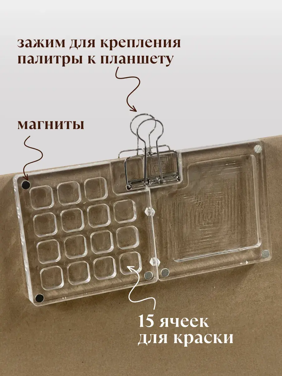 Палитра акриловая на магнитах с прищепкой: идеальный выбор для художников-пленеристов и путешественников, как начинающих, так и профессионалов.