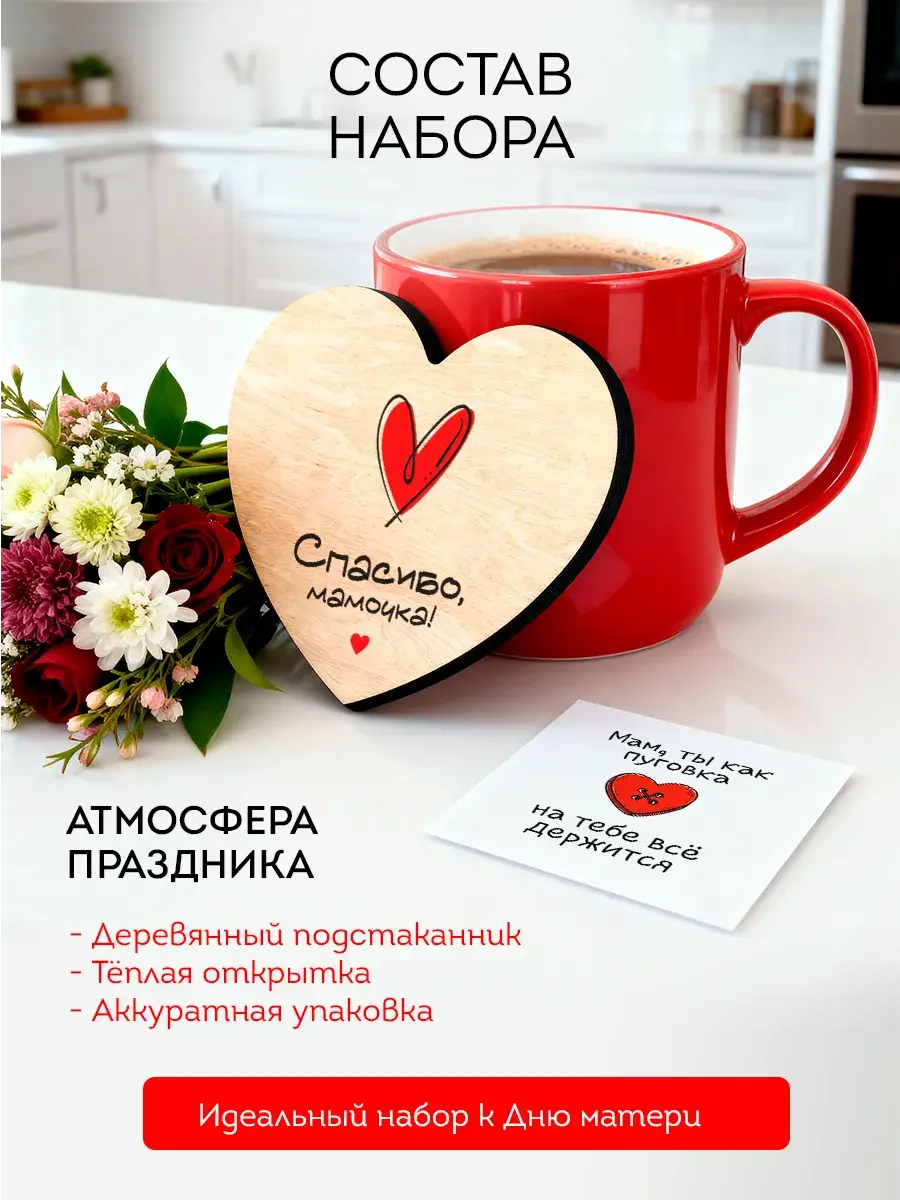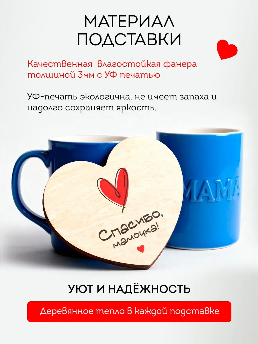 Ищете душевный и практичный подарок для мамы, сестры или бабушки? Наша деревянная подставка под кружку с красивым принтом — идеальное решение! Этот аксессуар станет милым знаком внимания и хорошим подарком на День Матери, 8 Марта, Новый год, День Рождения или любой другой праздник. Подставка защитит стол от влаги и пятен, а тёплый деревянный дизайн с уникальным рисунком создаст уют на любой кухне. Подарите заботу и красоту в одном подарке!