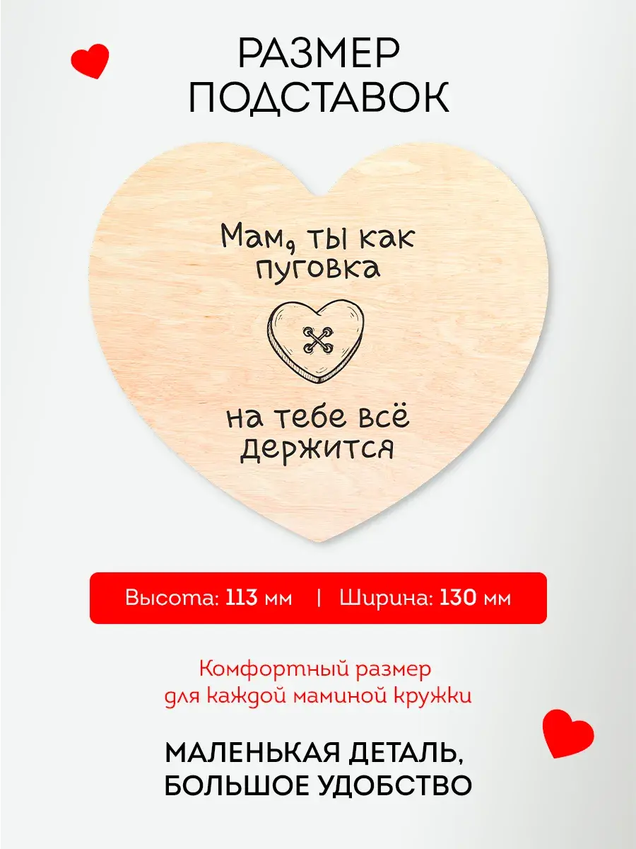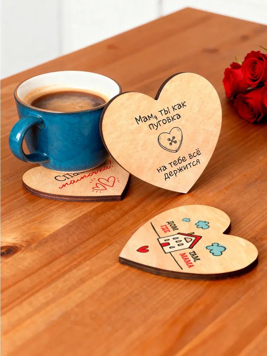 Ищете душевный и практичный подарок для мамы, сестры или бабушки? Наши деревянные подставки под кружки с красивым принтом — идеальное решение! Эти аксессуары станут милым знаком внимания и хорошим подарком на День Матери, 8 Марта, Новый год, День Рождения или любой другой праздник. Подставки защитят стол от влаги и пятен, а тёплый деревянный дизайн с уникальным рисунком создаст уют на любой кухне. Подарите заботу и красоту в одном подарке!