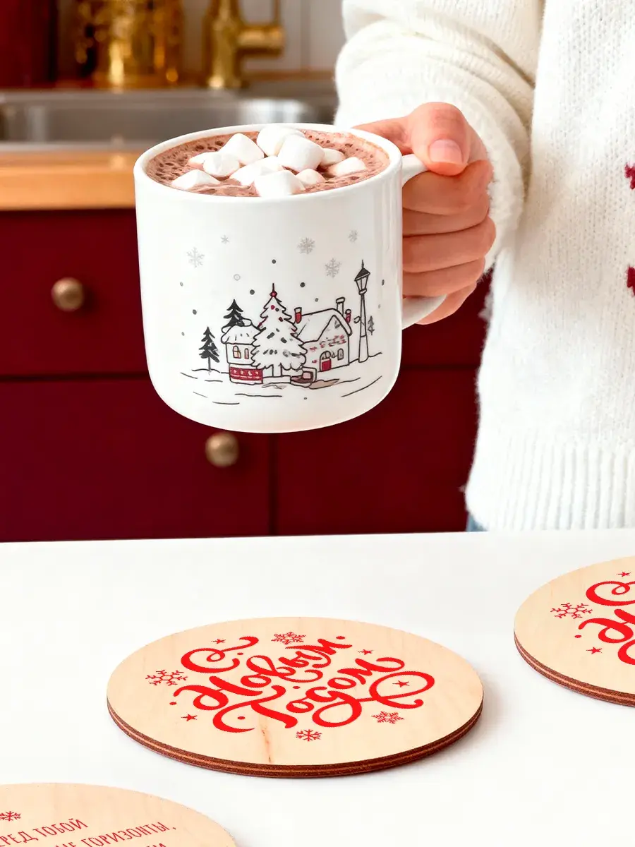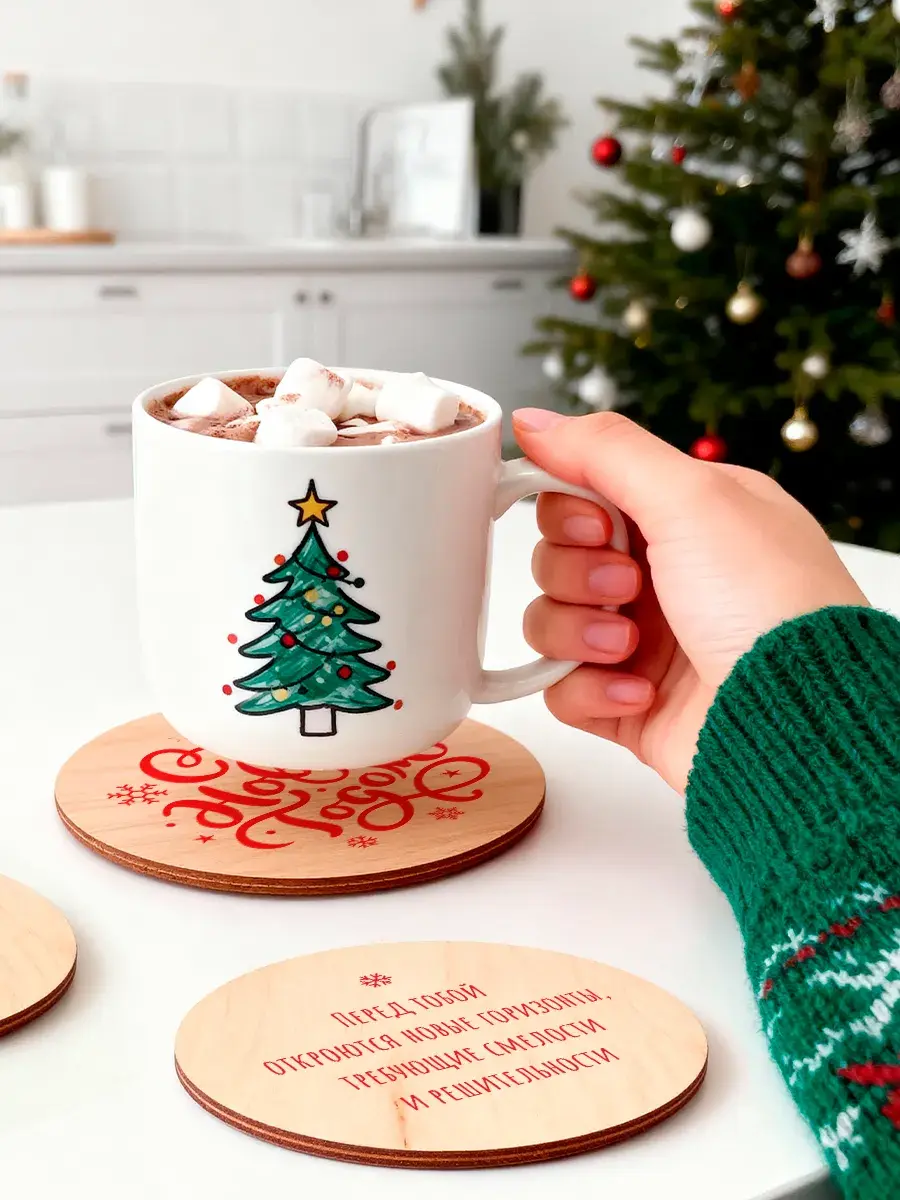 Использование новогодних украшений в интерьере дома, включая подставку, добавляет стильные акценты, подчеркнув уют и праздничное настроение. Эти деревянные украшения и новогодние игрушки — идеальное дополнение для тех, кто ценит оригинальный декор. Подставка для кружки — недорогой и интересный способ сделать подарок, который отлично впишется в праздничную обстановку.