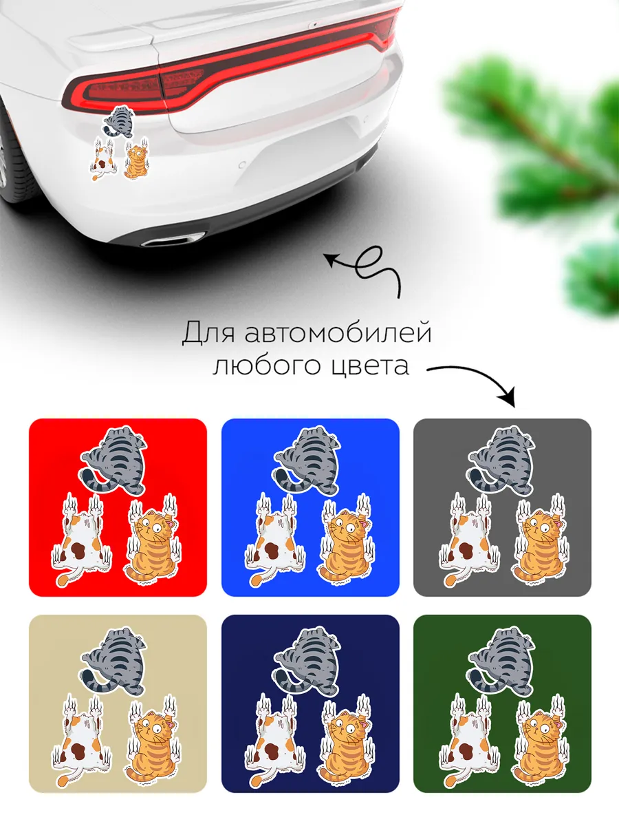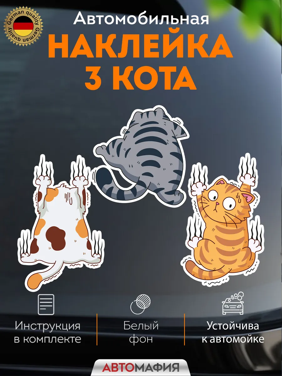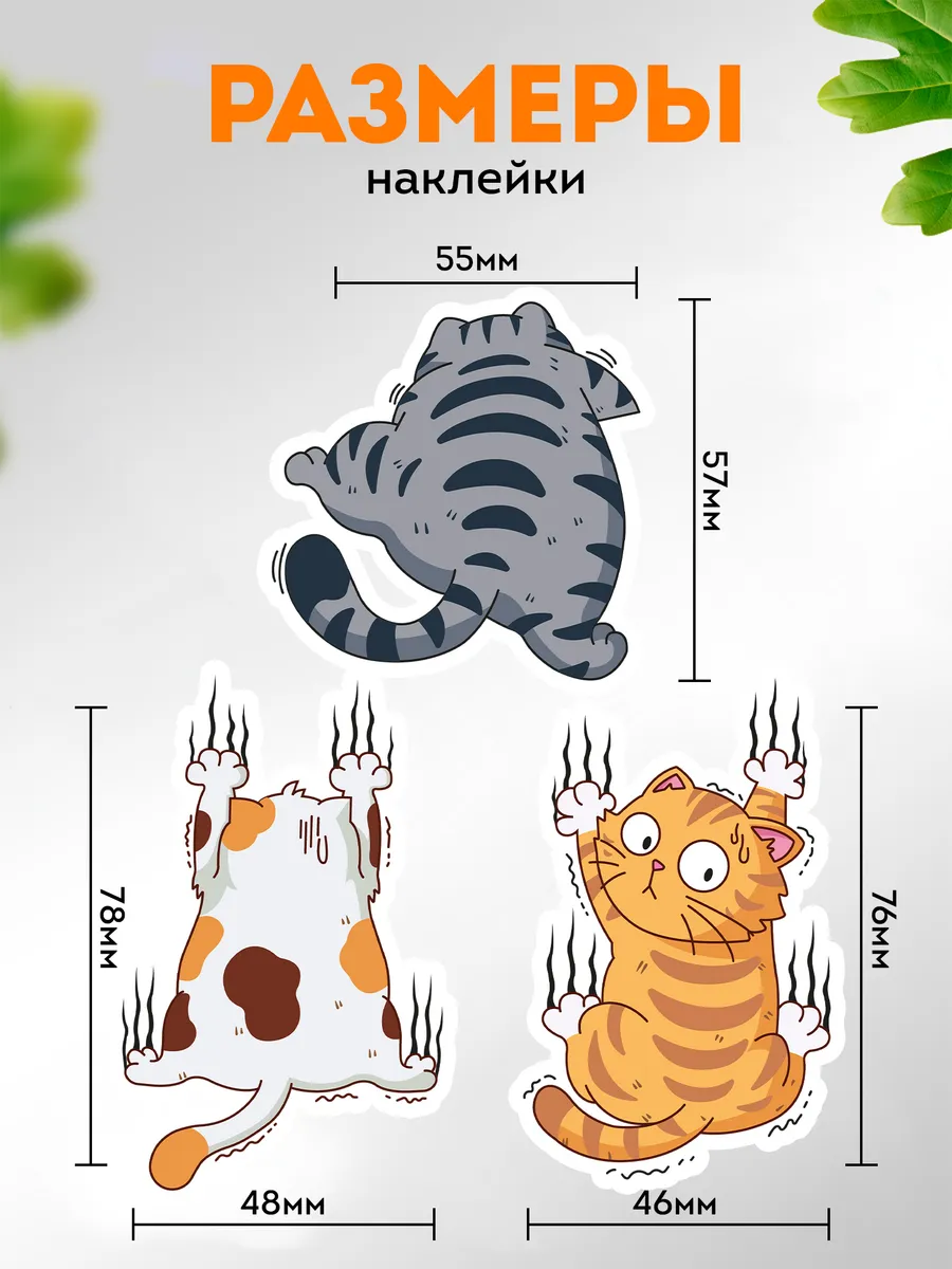 Каждая наклейка отличается детальной проработкой изображения: симпатичные и прикольные коты моментально привлекают внимание окружающих, добавляя индивидуальности вашему транспортному средству. Основное преимущество данных изделий — их универсальность. Наклейки подходят для размещения не только на стекло, но и на багажник, дверь или капот машины. Материал наклейки легко очищается, не оставляя следов клеевой основы на поверхности стекла либо окрашенных деталях машины при необходимости замены.
