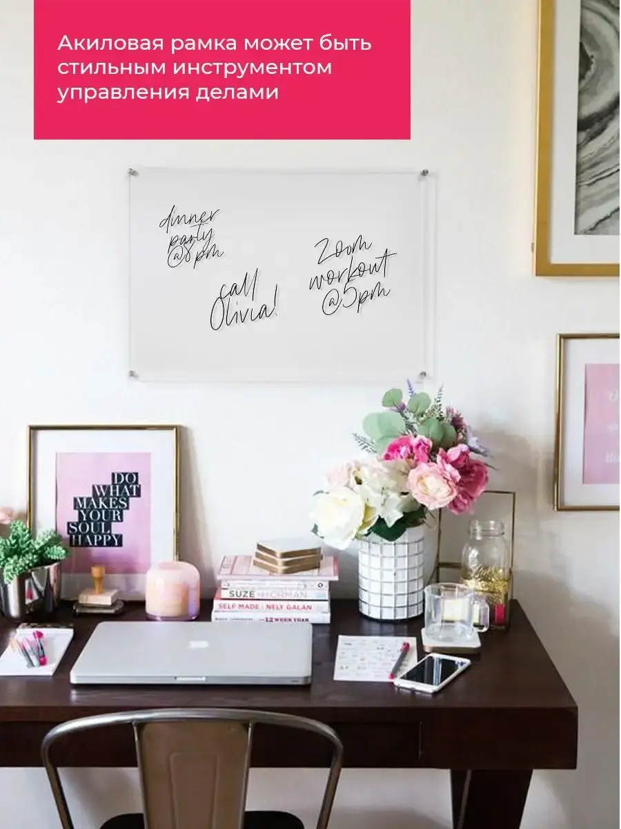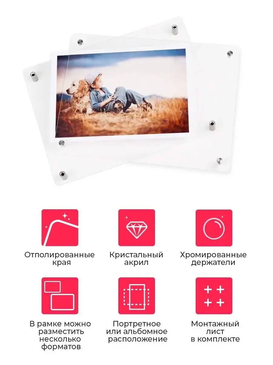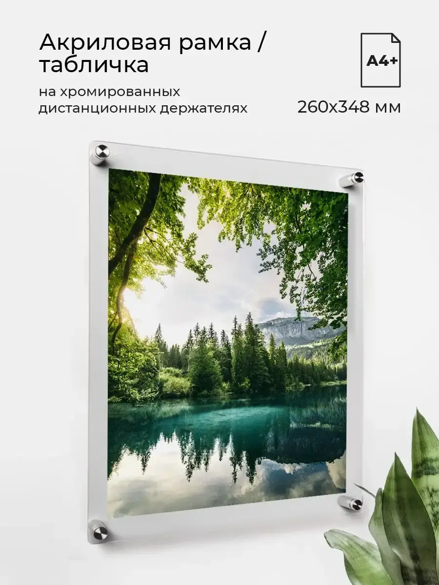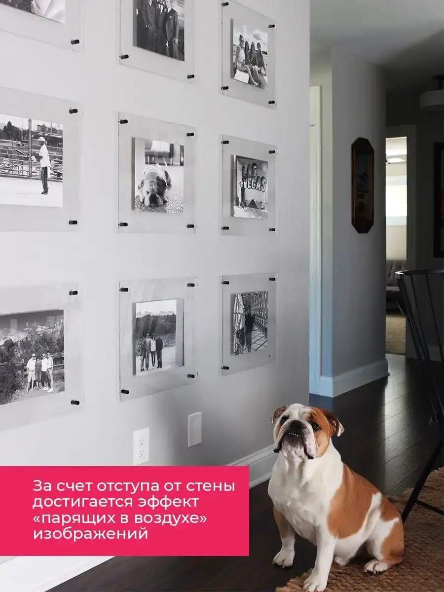 Безбагетная акриловая фоторамка на дистанционных держателях универсальна: