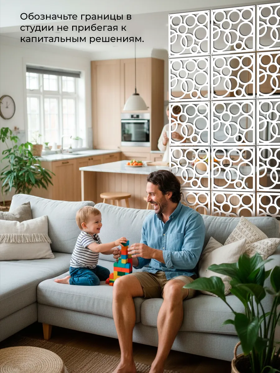 Функциональная перегородка для зонирования пространства — современное решение для организации как жилых, так и рабочих зон. Подвесная модульная конструкция из прочного премиум-пластика гармонично вписывается в любой интерьер благодаря лаконичному дизайну в стиле лофт. Применение такой перегородки дает возможность легко разделить комнату на отдельные функциональные зоны, организовав уютное и стильное пространство в квартире, офисе, на даче или в детской. Межкомнатная декоративная перегородка служит не только для зонирования комнат, но и как самостоятельный элемент интерьерного декора. Конструкция ширмы разработана с учетом удобства монтажа: настенное крепление гарантирует надежную фиксацию, а модульная система позволяет адаптировать размер под разные параметры помещения. Пласиковые элементы выполнены в современном стиле, разнообразность макетов можно миксовать между собой, что обеспечит еще большую эстетичность изделия. Ширмы такого типа особенно востребованы при необходимости быстро и без затрат перепланировать пространство. Перегородки эффективно разграничивают зоны отдыха, рабочие уголки, детские игровые секции — идеальное решение для современных квартир-студий и малогабаритных комнат. Благодаря декоративному исполнению, стенка не только выполняет функцию зонирования, но и придает интерьеру завершённый вид. Межкомнатные перегородки актуальны для тех, кто ценит практичность, мобильность и оригинальность. Лёгкая пластиковая штора-компаньон подойдет для оформления домашнего кабинета, создания приватной атмосферы в комнате, а также оформления офисных пространств и студий. Преобразите своё пространство стильной и функциональной перегородкой нового поколения.
