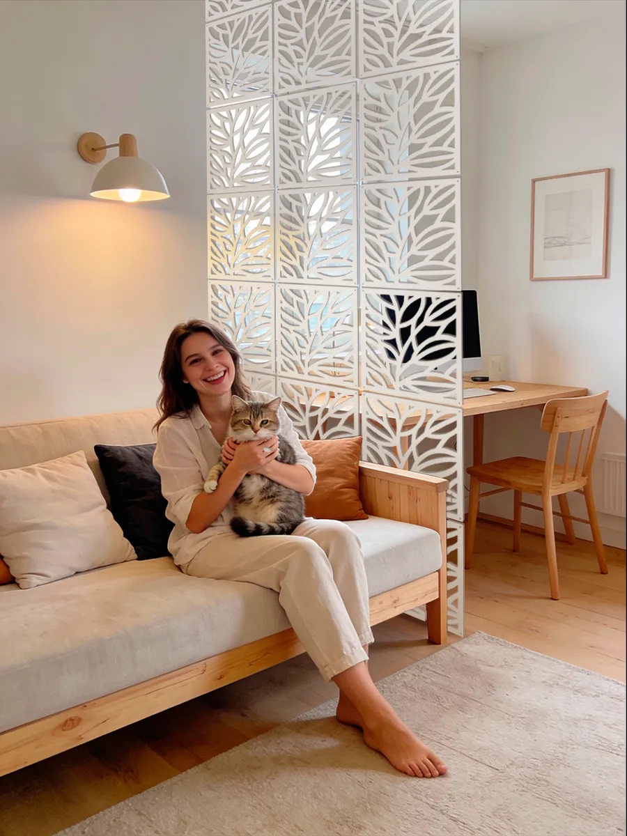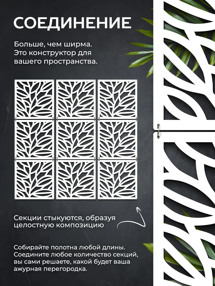 Функциональная перегородка для зонирования пространства — современное решение для организации как жилых, так и рабочих зон. Подвесная модульная конструкция из прочного премиум-пластика гармонично вписывается в любой интерьер благодаря лаконичному дизайну в стиле лофт. Применение такой перегородки дает возможность легко разделить комнату на отдельные функциональные зоны, организовав уютное и стильное пространство в квартире, офисе, на даче или в детской. Межкомнатная декоративная перегородка служит не только для зонирования комнат, но и как самостоятельный элемент интерьерного декора. Конструкция ширмы разработана с учетом удобства монтажа: настенное крепление гарантирует надежную фиксацию, а модульная система позволяет адаптировать размер под разные параметры помещения. Пласиковые элементы выполнены в современном стиле, разнообразность макетов можно миксовать между собой, что обеспечит еще большую эстетичность изделия. Ширмы такого типа особенно востребованы при необходимости быстро и без затрат перепланировать пространство. Перегородки эффективно разграничивают зоны отдыха, рабочие уголки, детские игровые секции — идеальное решение для современных квартир-студий и малогабаритных комнат. Благодаря декоративному исполнению, стенка не только выполняет функцию зонирования, но и придает интерьеру завершённый вид. Межкомнатные перегородки актуальны для тех, кто ценит практичность, мобильность и оригинальность. Лёгкая пластиковая штора-компаньон подойдет для оформления домашнего кабинета, создания приватной атмосферы в комнате, а также оформления офисных пространств и студий. Преобразите своё пространство стильной и функциональной перегородкой нового поколения.
