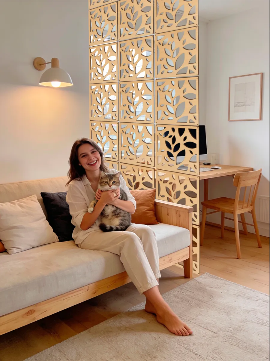 Межкомнатные перегородки актуальны для тех, кто ценит практичность, мобильность и оригинальность. Лёгкая деревянная штора-компаньон подойдет для оформления домашнего кабинета, создания приватной атмосферы в комнате, а также оформления офисных пространств и студий. Преобразите своё пространство стильной и функциональной перегородкой нового поколения.
