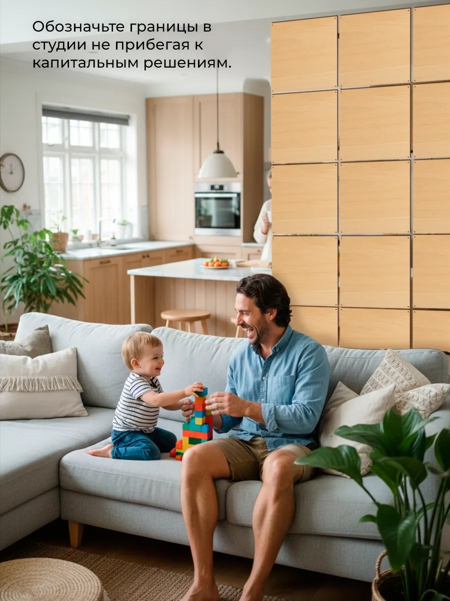Функциональная перегородка для зонирования пространства — современное решение для организации как жилых, так и рабочих зон. Подвесная модульная конструкция из прочного дерева гармонично вписывается в любой интерьер благодаря лаконичному дизайну в стиле лофт. Применение такой перегородки дает возможность легко разделить комнату на отдельные функциональные зоны, организовав уютное и стильное пространство в квартире, офисе, на даче или в детской. Межкомнатная декоративная перегородка служит не только для зонирования комнат, но и как самостоятельный элемент интерьерного декора. Конструкция ширмы разработана с учетом удобства монтажа: настенное крепление гарантирует надежную фиксацию, а модульная система позволяет адаптировать размер под разные параметры помещения. Деревянные элементы выполнены в экостиле, разнообразность макетов можно миксовать между собой, что обеспечит еще большую эстетичность изделия. Ширмы такого типа особенно востребованы при необходимости быстро и без затрат перепланировать пространство. Перегородки эффективно разграничивают зоны отдыха, рабочие уголки, детские игровые секции — идеальное решение для современных квартир-студий и малогабаритных комнат. Благодаря декоративному исполнению, стенка не только выполняет функцию зонирования, но и придает интерьеру завершённый вид. Межкомнатные перегородки актуальны для тех, кто ценит практичность, мобильность и оригинальность. Лёгкая деревянная штора-компаньон подойдет для оформления домашнего кабинета, создания приватной атмосферы в комнате, а также оформления офисных пространств и студий. Преобразите своё пространство стильной и функциональной перегородкой нового поколения.