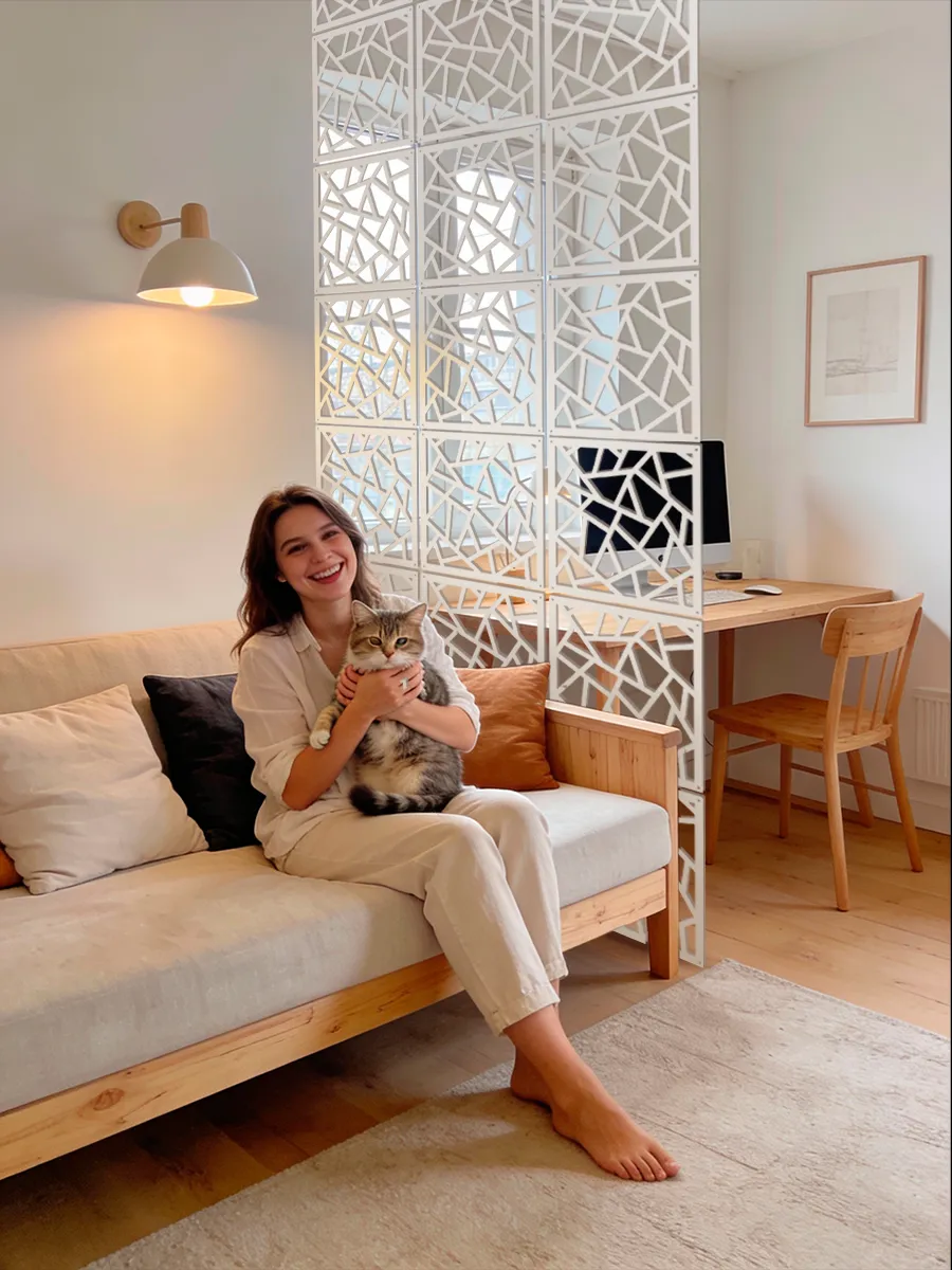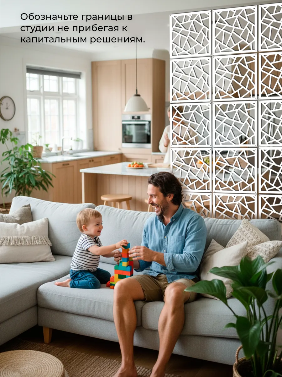 Функциональная перегородка для зонирования пространства — современное решение для организации как жилых, так и рабочих зон. Подвесная модульная конструкция из прочного премиум-пластика гармонично вписывается в любой интерьер благодаря лаконичному дизайну в стиле лофт. Применение такой перегородки дает возможность легко разделить комнату на отдельные функциональные зоны, организовав уютное и стильное пространство в квартире, офисе, на даче или в детской. Межкомнатная декоративная перегородка служит не только для зонирования комнат, но и как самостоятельный элемент интерьерного декора. Конструкция ширмы разработана с учетом удобства монтажа: настенное крепление гарантирует надежную фиксацию, а модульная система позволяет адаптировать размер под разные параметры помещения. Пласиковые элементы выполнены в современном стиле, разнообразность макетов можно миксовать между собой, что обеспечит еще большую эстетичность изделия. Ширмы такого типа особенно востребованы при необходимости быстро и без затрат перепланировать пространство. Перегородки эффективно разграничивают зоны отдыха, рабочие уголки, детские игровые секции — идеальное решение для современных квартир-студий и малогабаритных комнат. Благодаря декоративному исполнению, стенка не только выполняет функцию зонирования, но и придает интерьеру завершённый вид. Межкомнатные перегородки актуальны для тех, кто ценит практичность, мобильность и оригинальность. Лёгкая пластиковая штора-компаньон подойдет для оформления домашнего кабинета, создания приватной атмосферы в комнате, а также оформления офисных пространств и студий. Преобразите своё пространство стильной и функциональной перегородкой нового поколения.