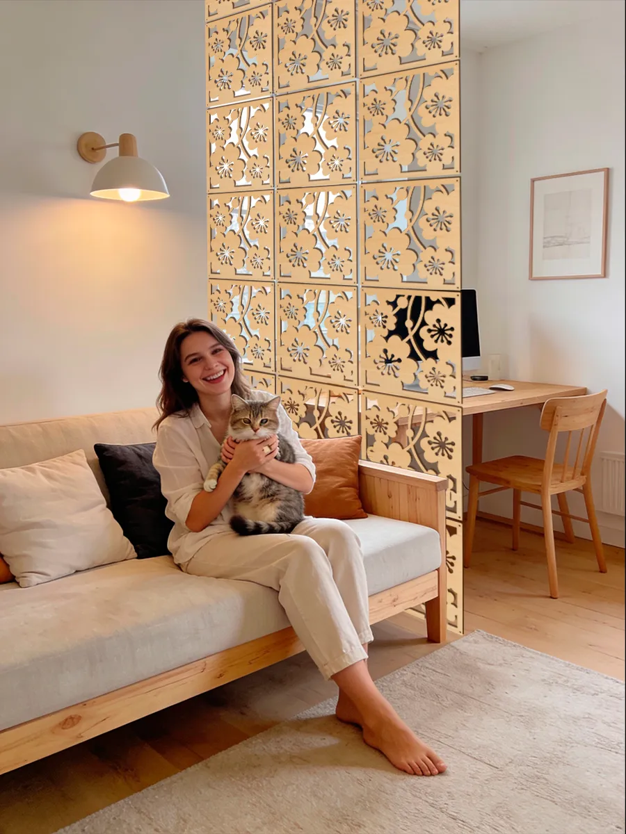 Ширмы такого типа особенно востребованы при необходимости быстро и без затрат перепланировать пространство. Перегородки эффективно разграничивают зоны отдыха, рабочие уголки, детские игровые секции — идеальное решение для современных квартир-студий и малогабаритных комнат. Благодаря декоративному исполнению, стенка не только выполняет функцию зонирования, но и придает интерьеру завершённый вид.