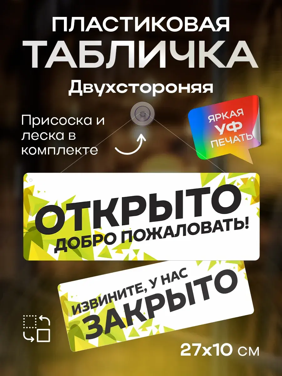Табличка пластиковая двухсторонняя с присоской "Открыто/закрыто"