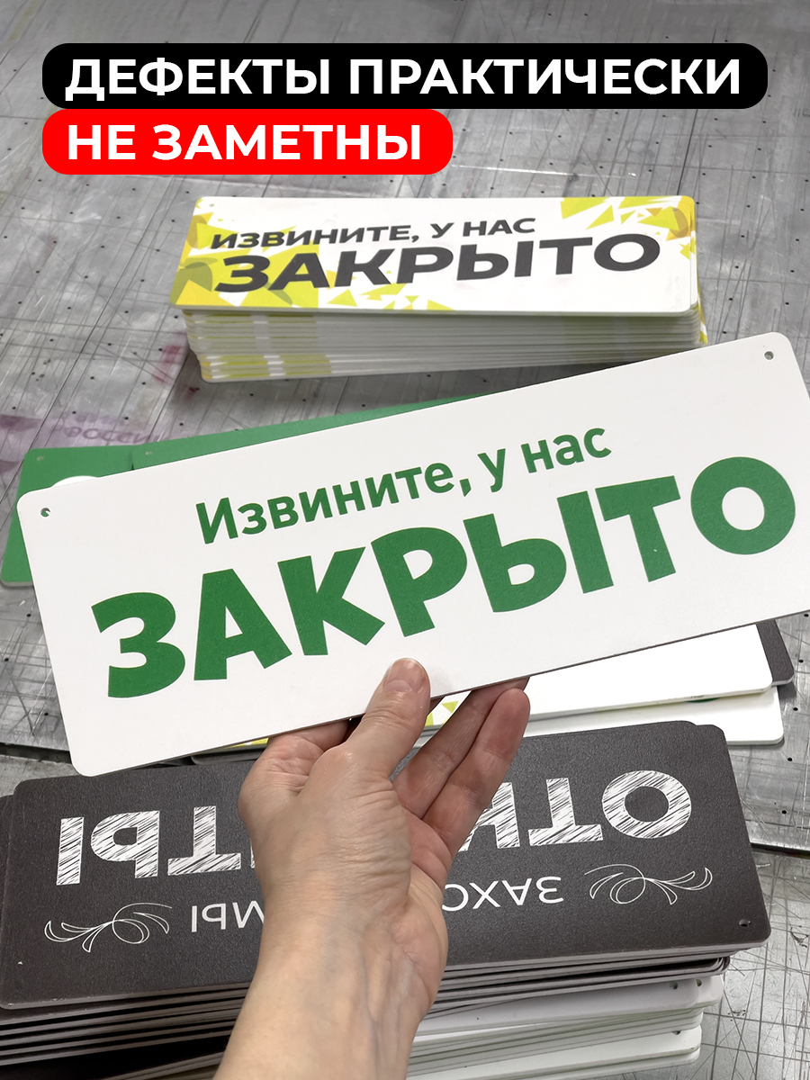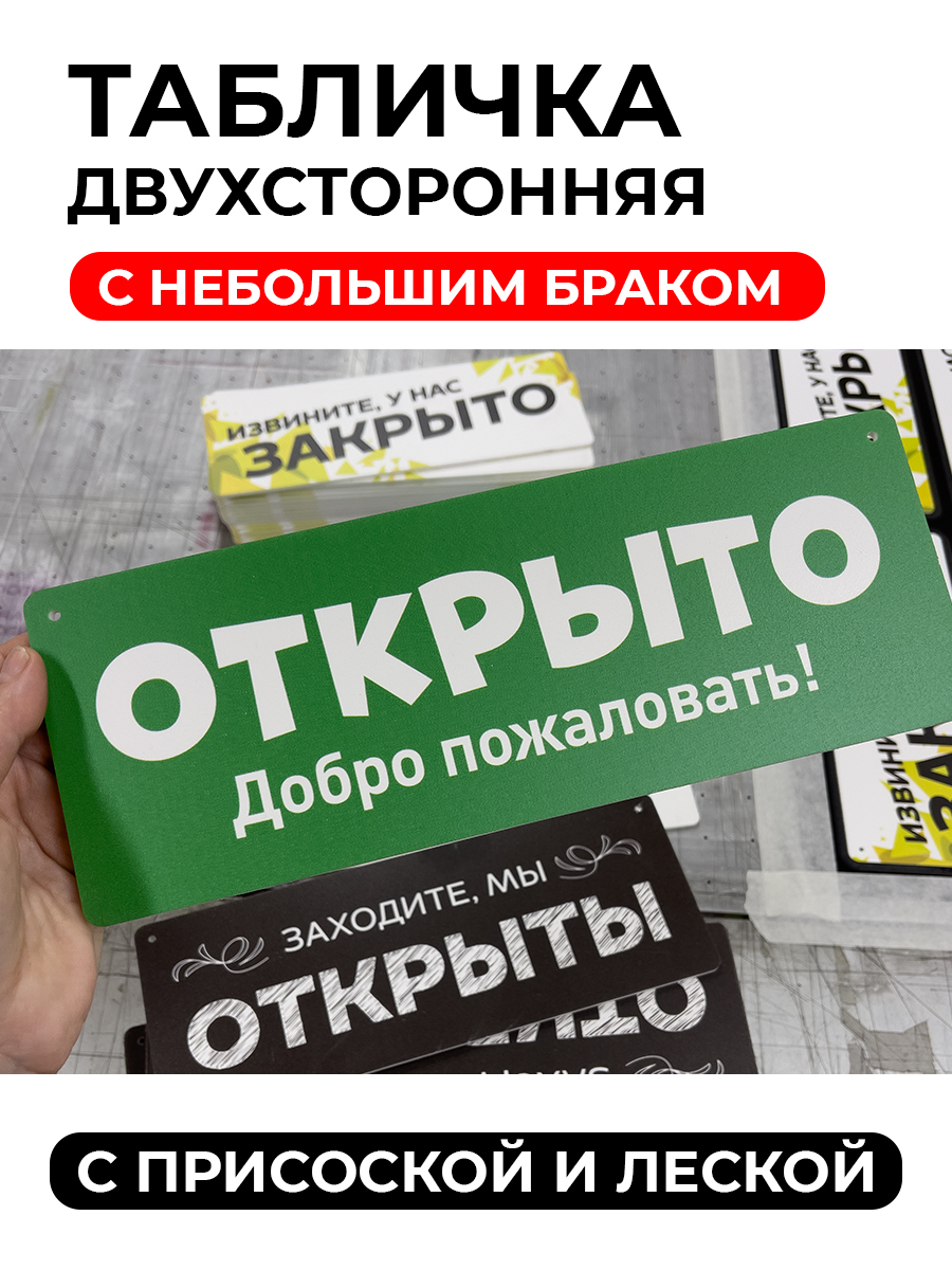 ВНИМАНИЕ! Табличка двухсторонняя Открыто/закрыто с небольшим браком, не сильно бросающимся в глаза. Дефекты могут быть разные.