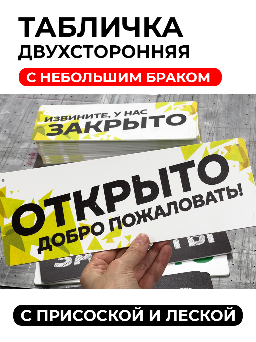 ВНИМАНИЕ! Табличка двухсторонняя Открыто/закрыто с небольшим браком, не сильно бросающимся в глаза. Дефекты могут быть разные.
