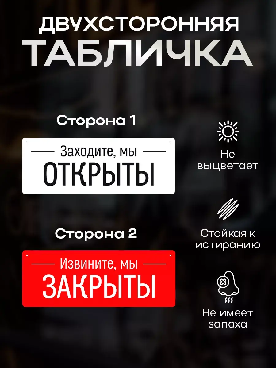 Представляем стильную и функциональную табличку "Открыто/Закрыто", которая станет незаменимым помощником для вашего бизнеса! Изготовленная из качественного пластика, она надежно крепится к любой поверхности благодаря мощным присоскам. Благодаря яркому красному цвету, ваша информация будет заметной издалека. Размер таблички составляет 27 см – оптимальный вариант для удобного размещения внутри помещения или снаружи. Приобретайте нашу продукцию прямо сейчас и сделайте свой бизнес еще эффективнее! Табличка пластиковая двухсторонняя с присоской "Открыто/закрыто"