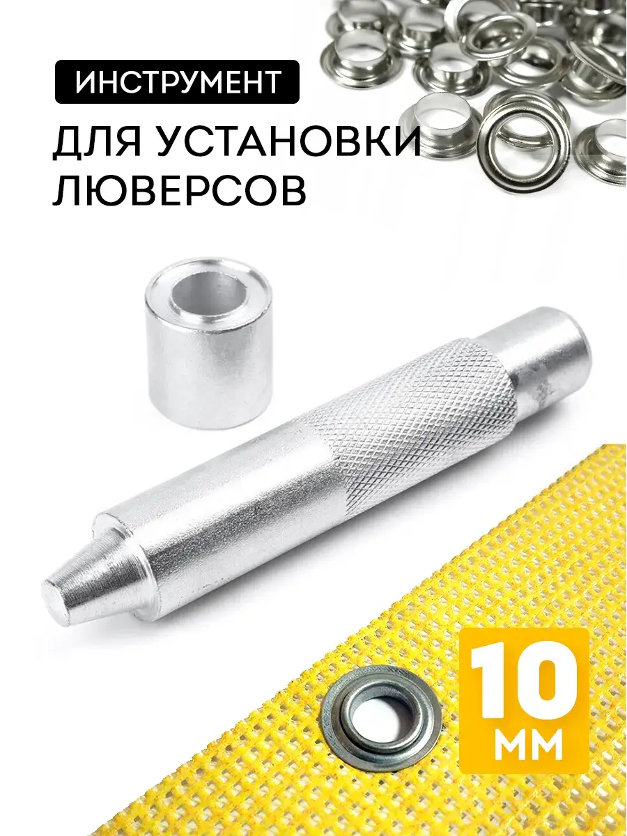 Установщик для люверсов диаметра 10 мм — незаменимый инструмент для создания аккуратных и прочных отверстий в баннере, баннерной сетке, ткани, коже и других материалах. Этот удобный инструмент позволяет быстро и легко устанавливать люверсы, придавая вашим проектам профессиональный вид. Благодаря прочной конструкции установщик прослужит долгое время.