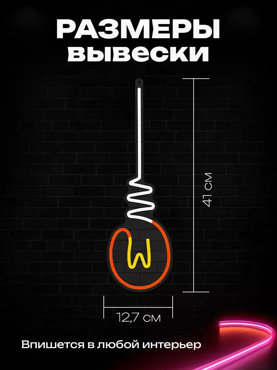 Вывеска из неона 2.0 в виде лампочки — это стильный и функциональный элемент декора, который подойдёт для любого помещения. Она выполнена из высококачественных материалов и обеспечивает яркое и равномерное свечение, создавая уютную атмосферу. Благодаря компактным размерам и простому монтажу, установка вывески не займёт много времени и сил.
